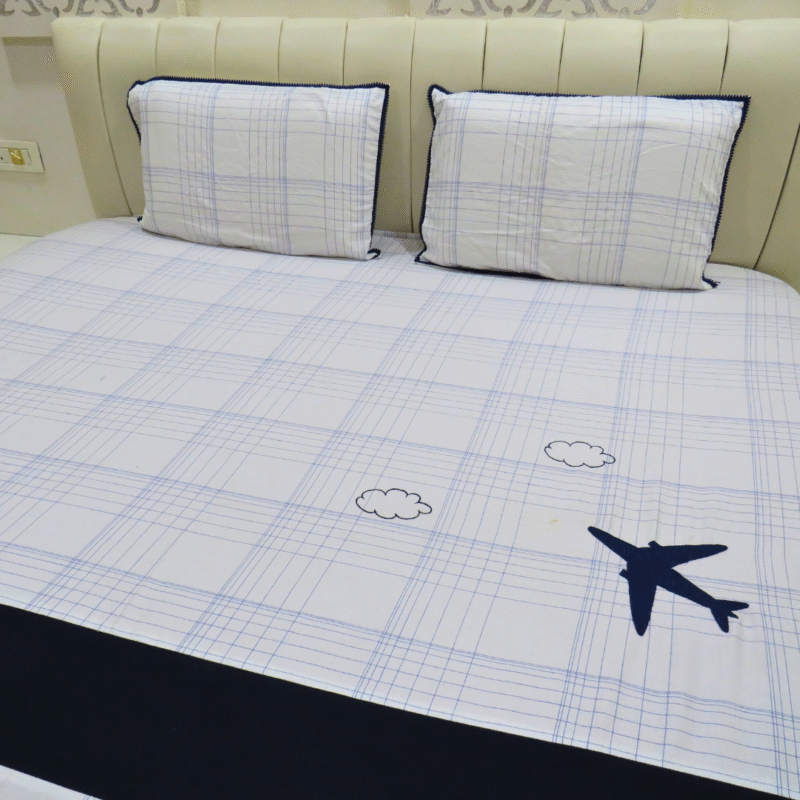 Bold Black & Hot Pink Printed Fitted Bedsheet Set with Pleated Pillows