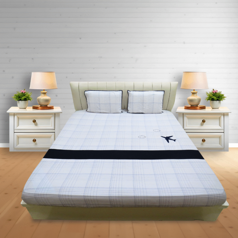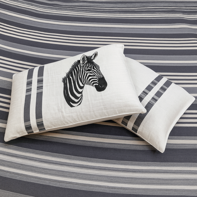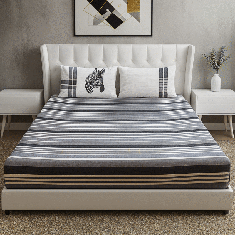 Modern Striped Fitted Bedsheet Set with Zebra & Geometric Pillows