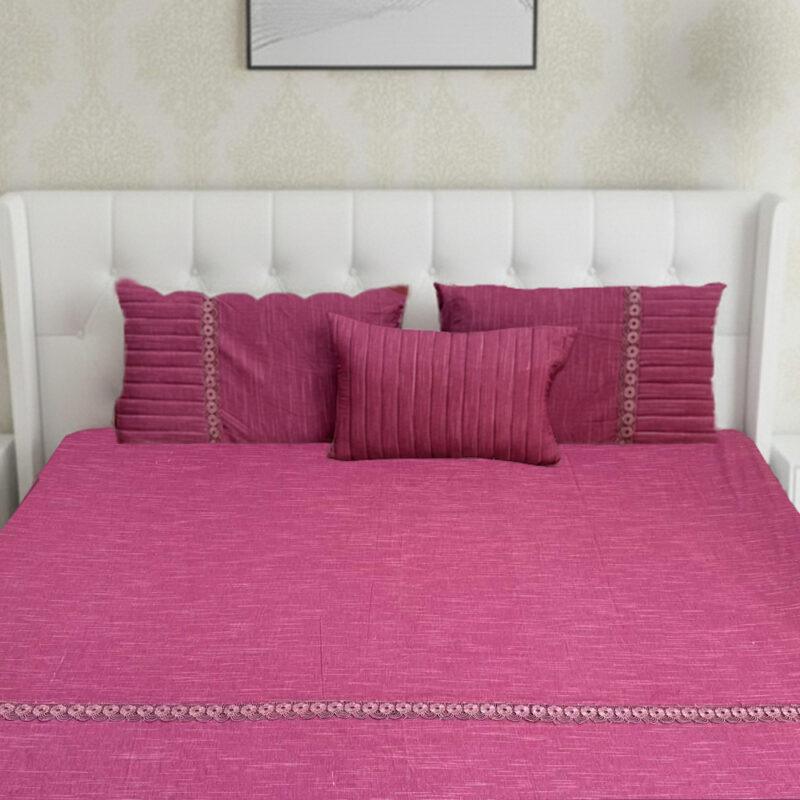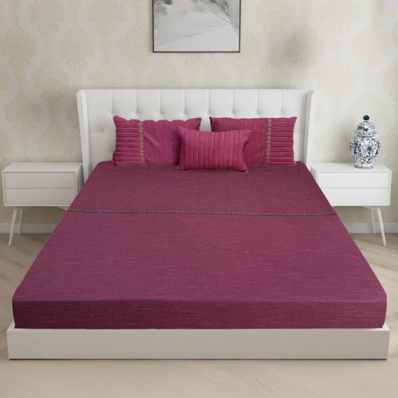 Rich Berry Purple Fitted Bedsheet Set with Pleated Pillows